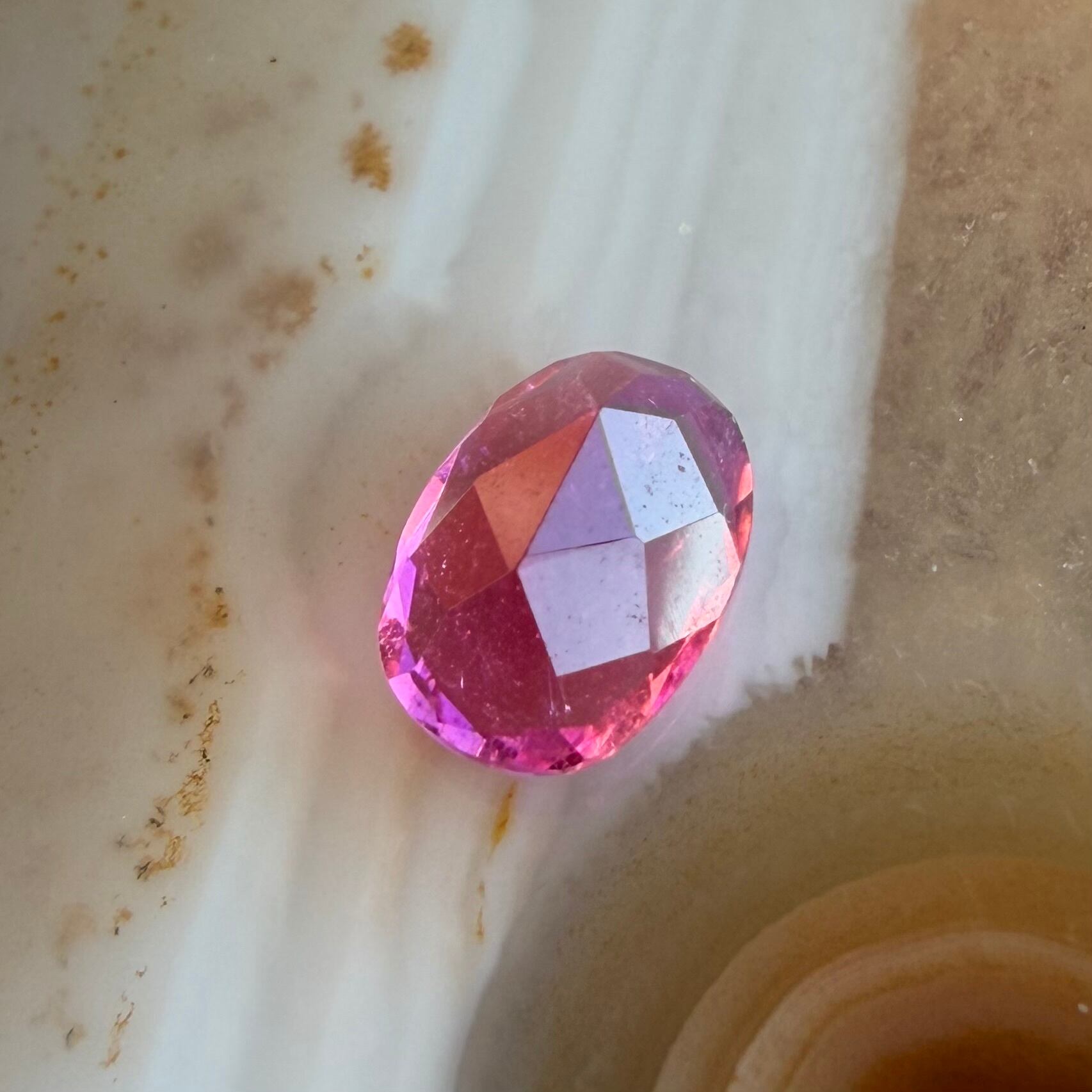 内部には天然石由来のインクルージョンが見られますが、