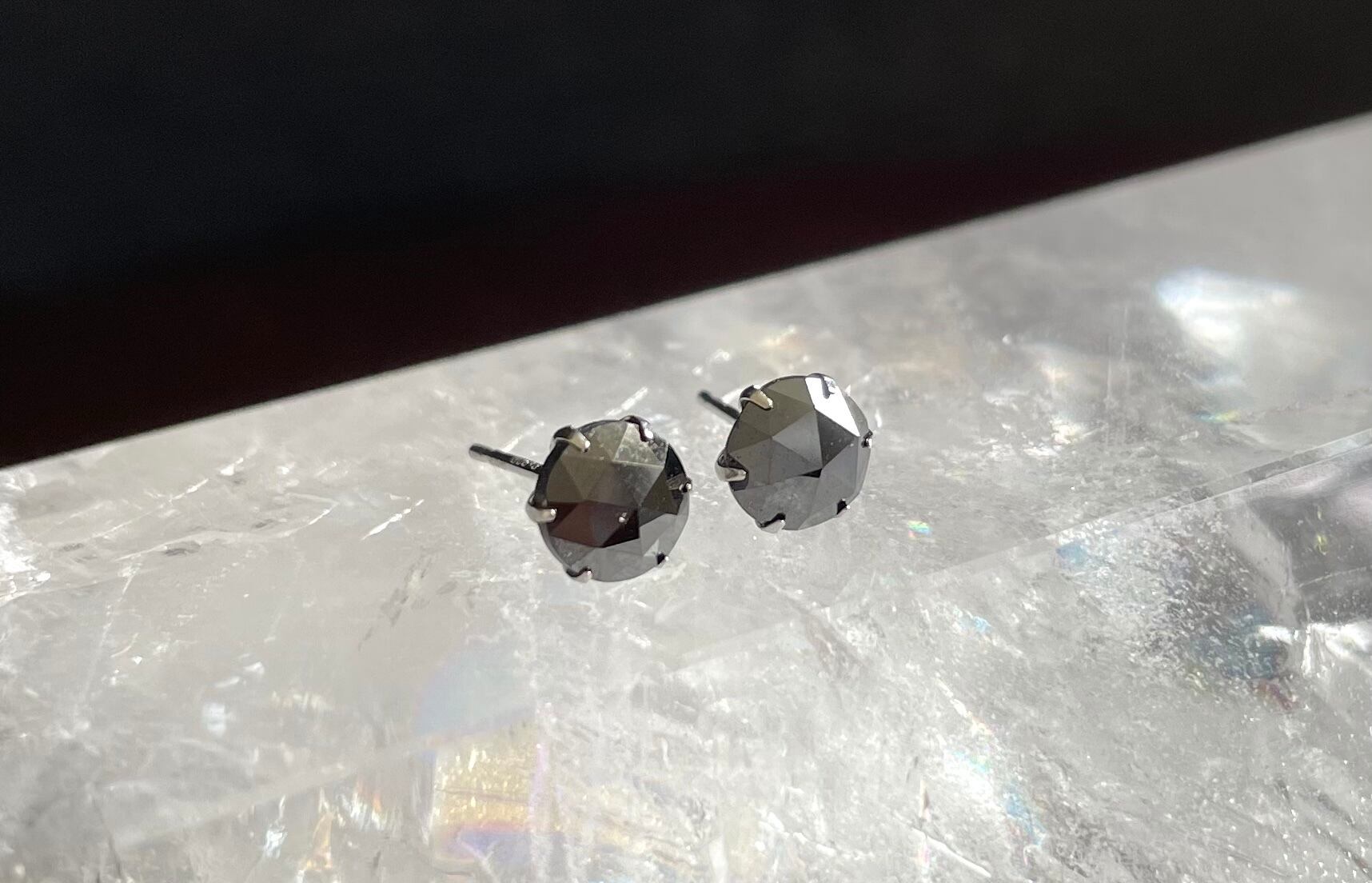 ローズカットのブラックダイヤモンドピアス