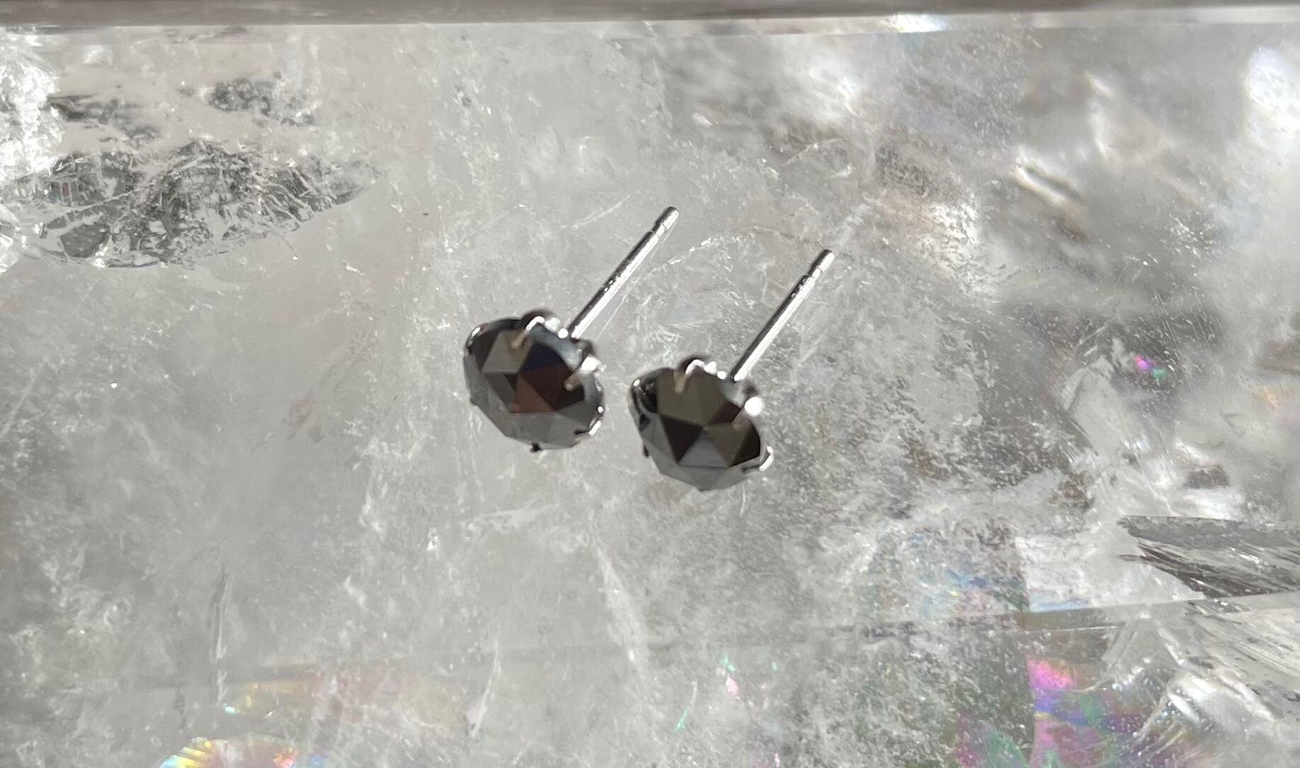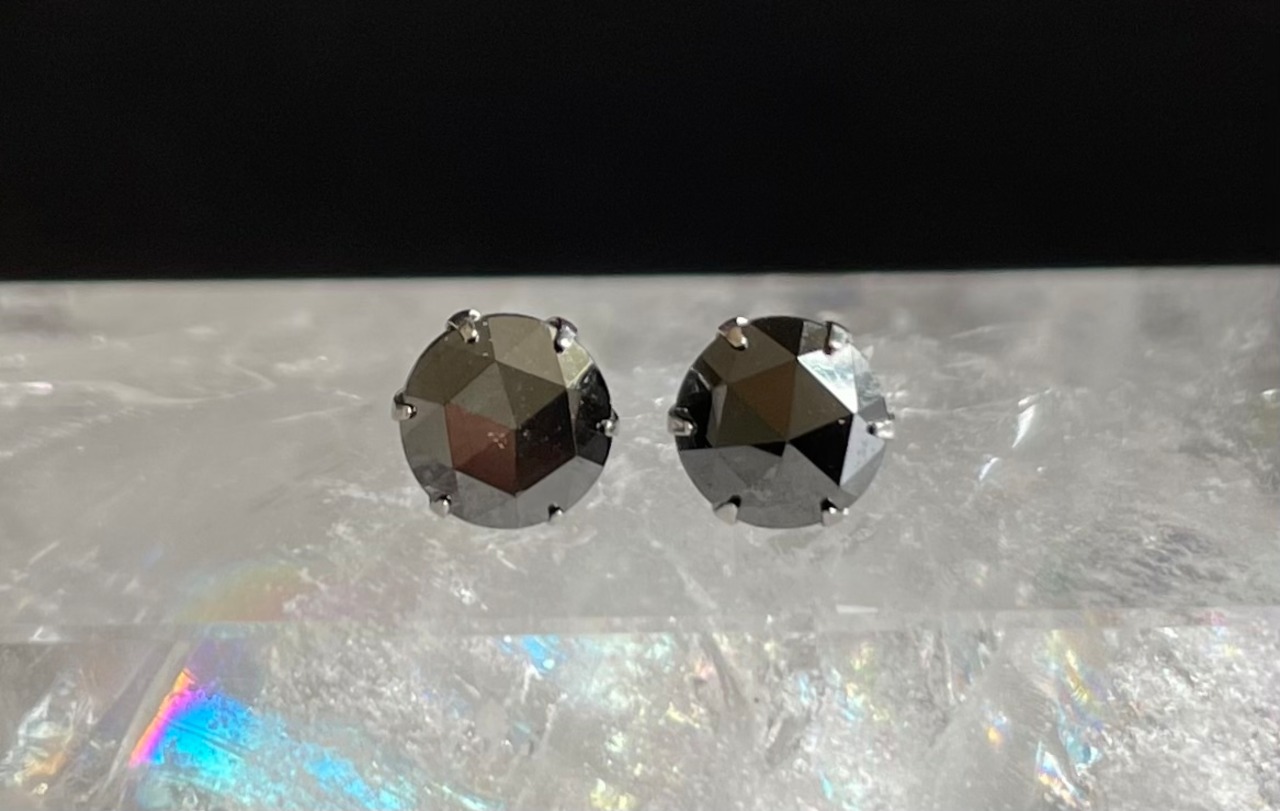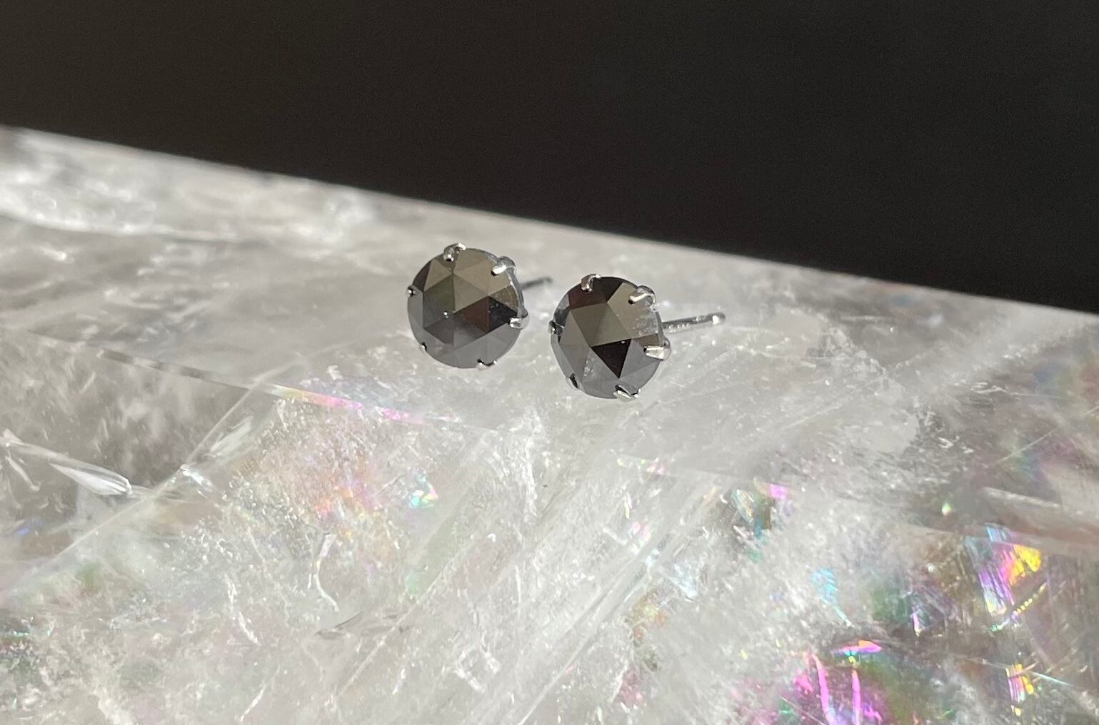 ローズカットのブラックダイヤモンドピアス。